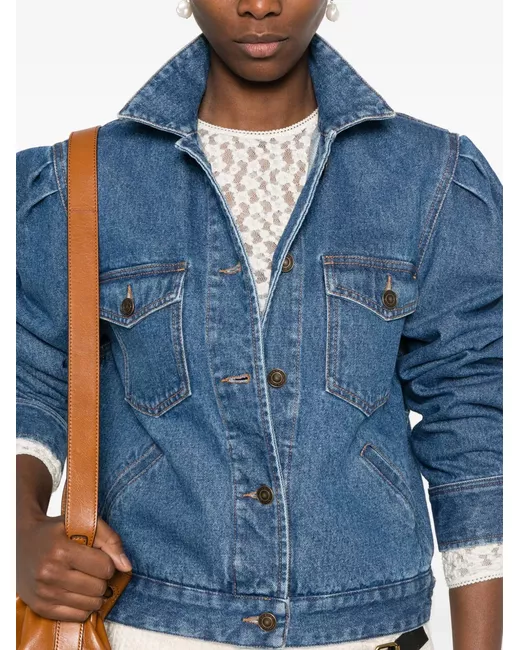 indigo blue front button fastening two chest flap pockets two side welt pockets long sleeves