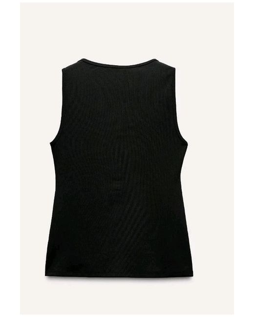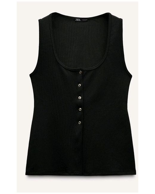 Stylish ribbed top from Zara. RIBBED TOP WITH BUTTONS. Sleeveless round neck top. Front button closure. Height 177cm. The model on the pictures wears size M.