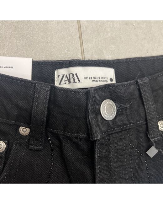 These stylish black denim trousers from Zara are perfect for any casual occasion. The loose fit design provides both comfort and style, making them a great addition to any wardrobe. The trousers are available in size XS (UK 4), with a regular fit for women. Made from high-quality materials, these Zara trousers are both durable and stylish. The black colour is versatile, making them easy to match with any top or shoes. These trousers are perfect for any woman who wants to look great while feeling comfortable.