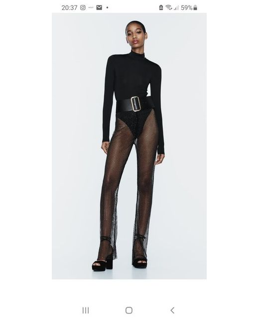 They fall under the trousers category in clothes, shoes and accessories. With their stylish design and comfortable fit, these leggings are a must-have for any fashion-conscious woman. The black fabric is accented with rhinestones, giving them a glamorous touch.