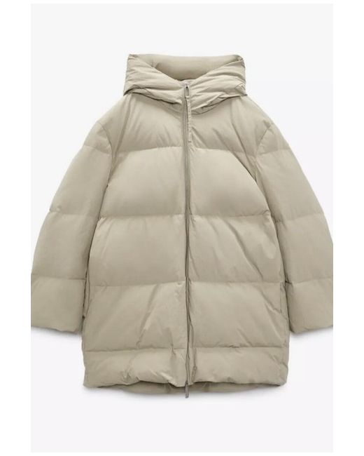 Zara Oversized Feather Down coat. Beige. Size Medium. NWT. Zipped pocket either side Elasticated wrist cuffs Knee length or above Hood I found this item to be a larger fit A/W21