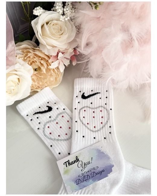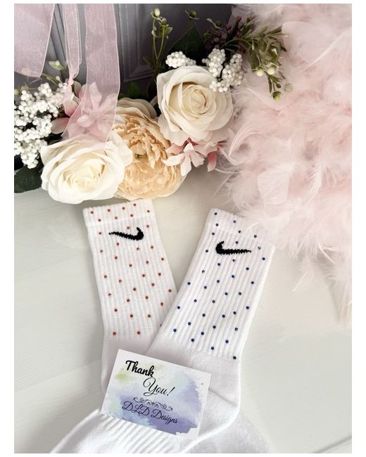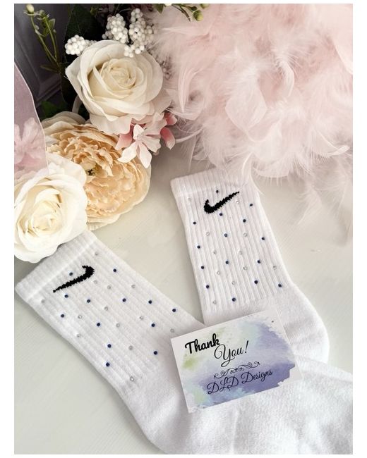 Genuine Nike socks, but with a sparkly twist size 5 to 8 women’s These are ready to go now. I do Make to order a one to 2 week turnaround. I also have infant kids juniors and adult size so if you have any questions, please message me happy to help 1 pair discount on more!