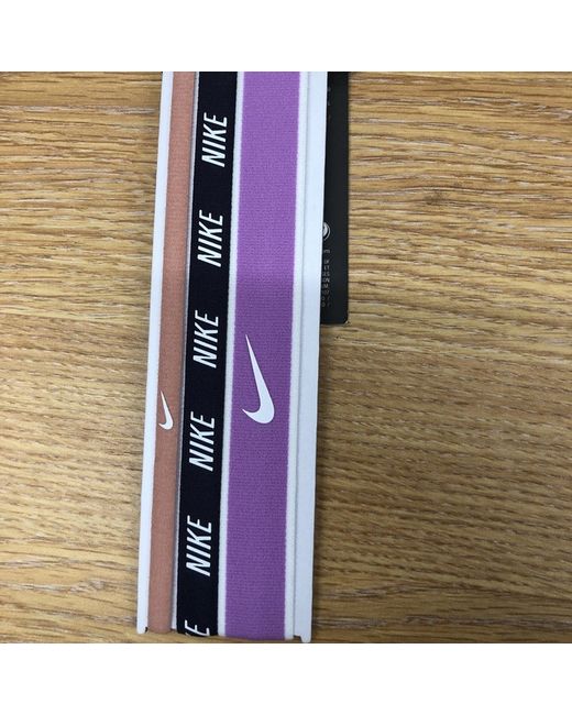 Nike Headbands (3 Pack) New in packaged un-used Nike Mixed Width Headbands are ideal for training sessions and come in a selection of colours. They have been designed with silicone taping on the inside to make sure they stay in place and the stretchy fabric also offers a snug and secure fit. Features: Stretchy elastic band for a comfortable fit Silicone grips your hair and keeps band in place Width: 0.6 cm / 1.1 cm / 2 cm 3 Pack