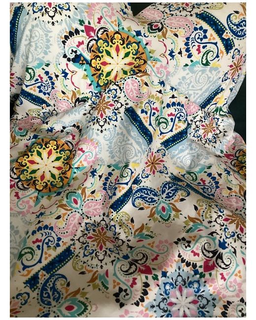 The top has a halter neck. And at the back has a sliver clip, which adds a sense of glam. This top will match with any swim bottoms, because of the various colours in it. You are looking at a colourful floral design swim top.
