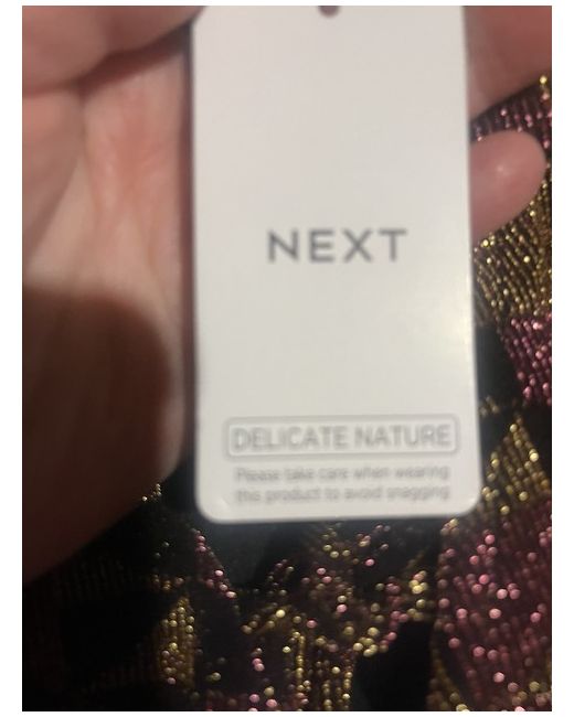 Next metallic looking top size 12 New with tags Length from nape of neck to hem approx 59cm This has a v neck, long sleeved crossover front and elasticated bottom Metallic looking rise pink gold and black diamond pattern and lined Size medium New with tag Please check my other listings as I do offer combined postage