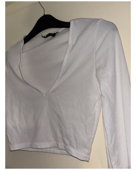 This white crop top in size 6 is a stylish and versatile piece perfect for both casual and party occasions. Made of lightweight polyester and elastane material, the top features a V-neckline and long sleeves, making it suitable for spring and summer seasons. The regular fit and stretchy fabric offer comfort and ease of movement. Easy to care for with machine washable instructions, this Primark brand top is a trendy addition to any woman's wardrobe.