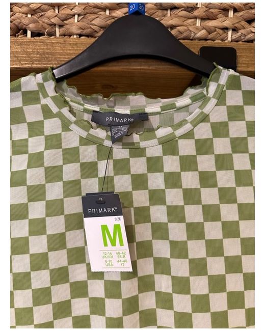 White Checkerboard Pattern Mesh Top Medium 12/14 da Women di colore Verde