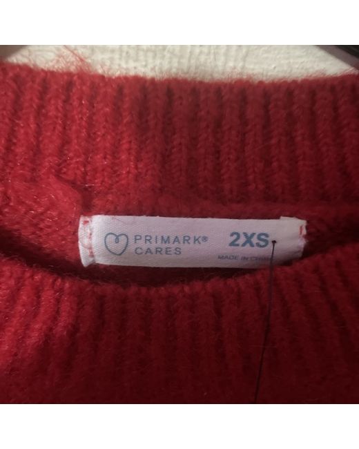 This 2XS Primark jumper is a stylish addition to a woman's wardrobe. Made of a blend of polyester, nylon, wool, and elastane, it features a red colour with a classic round neck and long sleeves. The pullover style offers comfort and warmth, making it suitable for everyday wear. Perfect for those looking for a new and fashionable addition to their collection, this jumper is ideal for women who prefer a regular fit in their clothing.