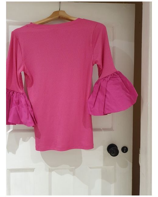 A juicy pink blouse with flared sleeves. It will beautifully emphasize and liven up any styling.