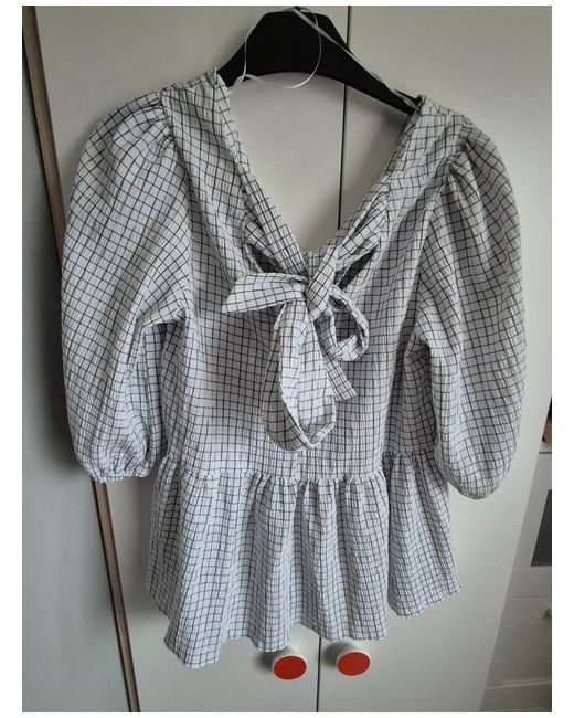 This is a New Look white checked blouse in size 8 for women. It features a regular fit and a stylish check pattern. Perfect for pairing with any bottoms for a chic look.