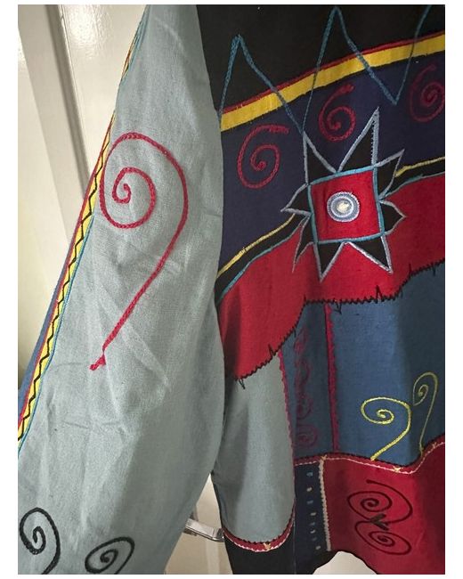 The blazer-style jacket features a cotton blend outer shell in a stylish blue and red patterns, and is fully lined.