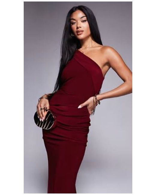 Drape Maxi Dress One Shoulder Burgundy Strappy Back Train Stretch 10 da Women di colore Rosso