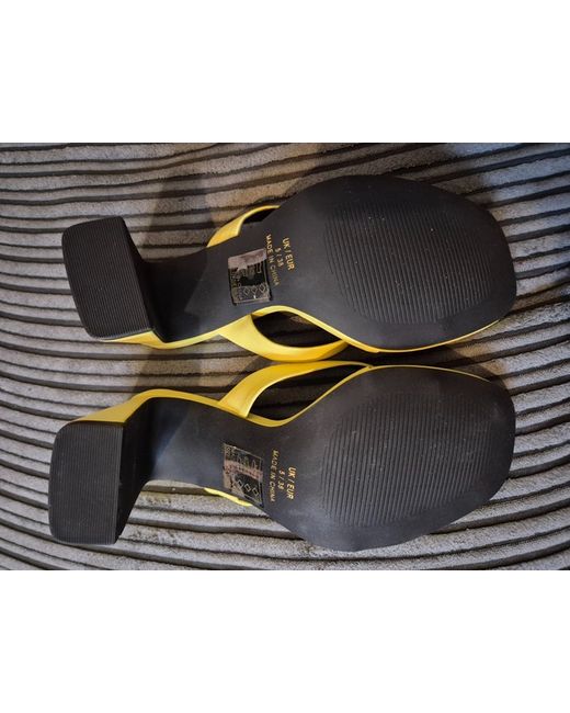 Add a pop of colour to your shoe collection with these stylish ASOS heeled mules in a vibrant shade of yellow. Perfect for women who want to add a touch of sophistication to their outfit, these mules feature a comfortable heel height and a sleek design that will complement any wardrobe. With a UK shoe size of 5, these mules are perfect for women looking for a stylish and comfortable addition to their shoe collection.Ideal for both formal and casual occasions, these ASOS heeled mules are a must-have for any fashion-forward woman. The mule style is perfect for wearing with a variety of outfits, from dresses to jeans. So why wait? Add these stunning yellow mules to your wardrobe today and step out in style!