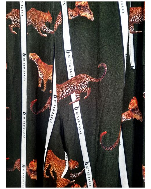 These TED BAKER Green Leopard Design Pyjamas in UK size 20 are a stylish addition to any woman's nightwear collection. The sleeveless vest features a round neckline and a pull-on closure for a comfortable fit and is made from a 95% Cotton and 5% Elastane mix.The pyjamas trousers have an elasticated waist and cuffed ankle and are made from a blend of 95% Viscose and 5% Elastane jersey fabric, they are easy to care for with machine washable instructions.