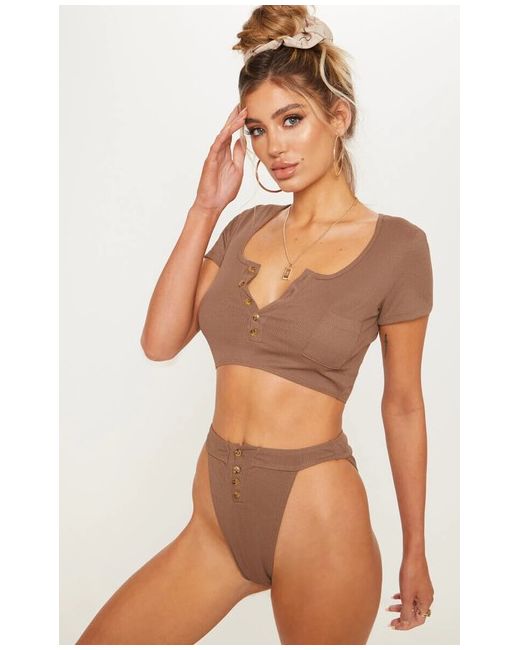 Chocolate Ribbed Button Down Bikini 10 Bnwt