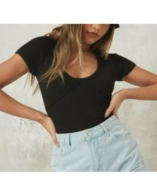 MISSGUIDED Black Ribbed Bodysuit Size 4. Bodysuit from Missguided Ribbed V-neckline Snap buttons at gusset MATERIAL 70% Viscose 30% Polyamid UK Size 4 Despatched Royal mail or Other