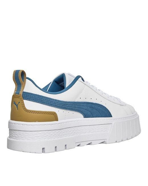 Puma low profile lace up leather trainers with platform rubber sole. Leather and synthetic upper. Platform rubber sole. Heel pull. Lightly cushioned footbed.