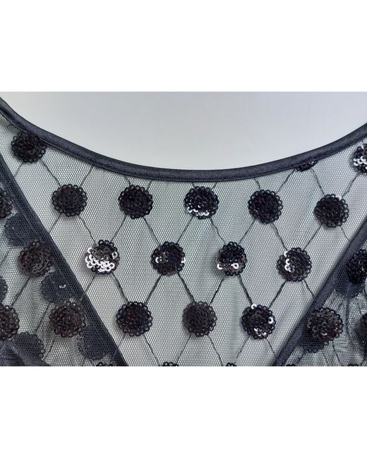 It has a round neck to the front, a v neck to the back, a fixed waist, a self tie belt - which also has the sequin 'flowers' on - and a concealed zip closure to the back with a hook and eye fastener.