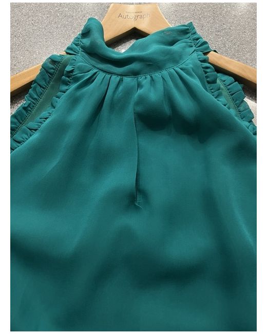 New Monsoon green top size 14. Beautiful vibrant jade green halter neck top, ruffles around neckline, long tie at back can be left hanging or bowed , slit at neck front & back, fully lined, lovely with black, white, jeans, shorts etc RRP Ā£45.00. Excellent gift š