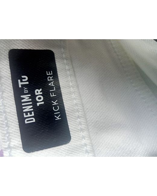Embrace timeless style with these white flared jeans from Tu, size 10, crafted for those who appreciate a blend of classic design and modern comfort. The mid-rise waist and regular fit offer a flattering silhouette, while the cotton denim fabric ensures breathability and durability. The jeans feature a convenient zip closure, complemented by a traditional button accent for a polished finish. A practical 5-pocket design provides ample storage, making these jeans a versatile addition to your wardrobe for any casual occasion.