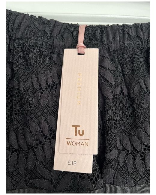 This black bardot top in size 12 from TU is a stylish and versatile addition to any woman's wardrobe. The sleeveless blouse features a flattering bardot neckline, making it perfect for a variety of occasions. The classic black colour ensures it can be easily paired with different bottoms for a chic and effortless look. Perfect for women who value both style and comfort in their clothing choices.
