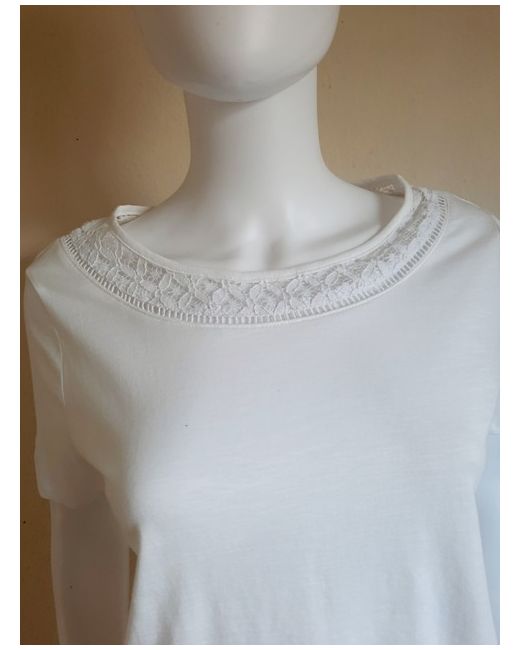 Crafted by TU, this white T-shirt is a staple for any wardrobe, offering a blend of comfort and versatility. In a size 10, it's tailored to fit regularly, ensuring a relaxed and flattering silhouette for a variety of body types. The shirt features short sleeves ideal for warmer days or layering under jackets, making it a practical choice for both casual and smart-casual ensembles. Its crisp white hue makes it a breeze to pair with any outfit, making it an essential everyday piece. back photo shows a dent in fabric on the shoulder, it got caught in mannequins arm fitting. there's no damage to it and will be fine ironed out or once washed