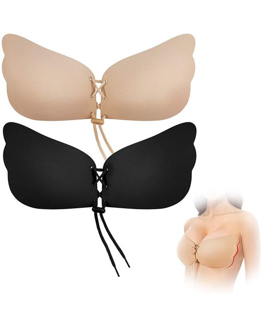 Bafully Invisible Adhesive Strapless Bra 2 Pack Sticky Push Up Silicone with