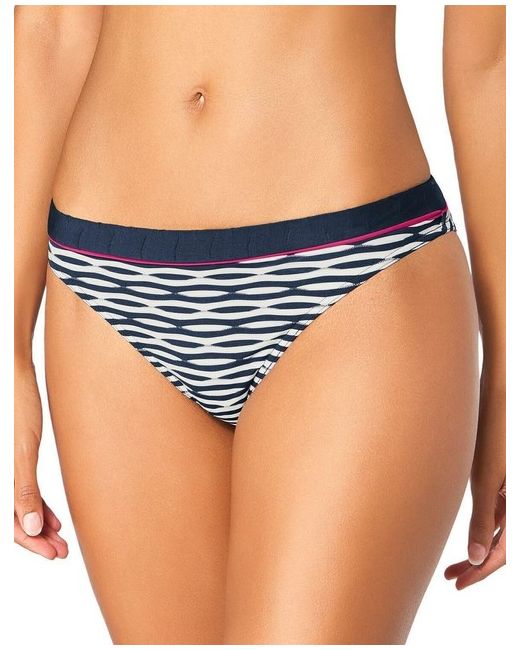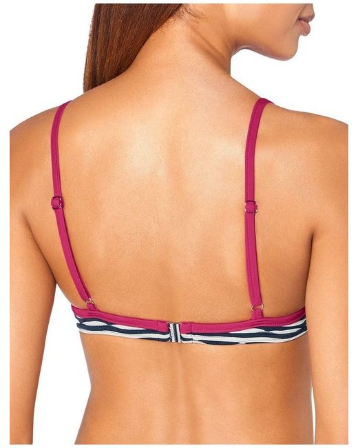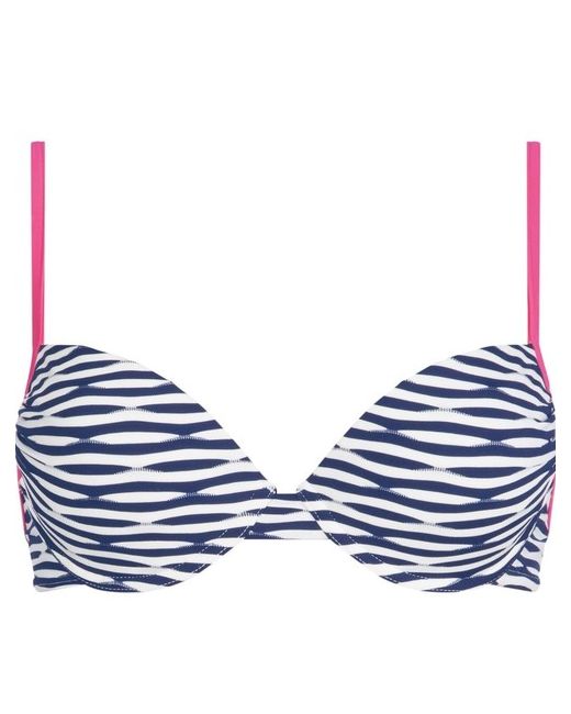 This Triumph underwired and padded bikini top, part of the Waves of Light range. Light padding to give a flattering shape. Adjustable straps, for a great fit. Underwired Striking contrasting print and edging. Team it up with mix and match briefs.