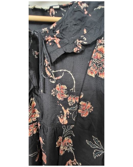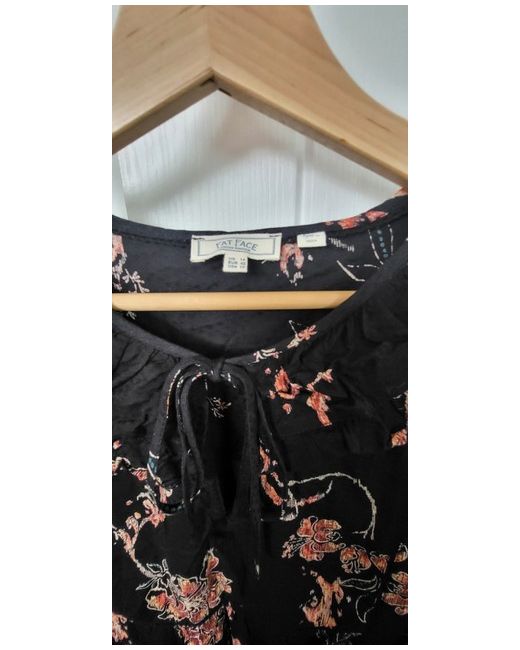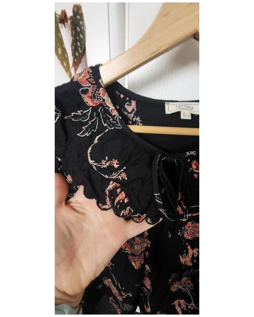 This Fat Face Black Floral Bouse is a beautiful addition to any wardrobe. The blouse features a tie neck closure and balloon sleeves with crochet accents in the seams and a frilled collar. The black colour with floral pattern makes it perfect for any occasion. The size 14 regular fit blouse is made for women who love comfortable and stylish clothing. It is a perfect choice for those who want to look chic without compromising on comfort. The blouse is suitable for all seasons and can be paired with any bottom wear.