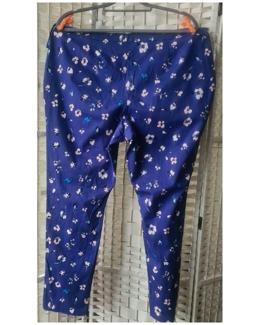 Vibrant blue floral printed trousers with stretchy legs. Waist to crotch 32cm/12.5in. Crotch to hem 73.5cm/29in. Machine washable. Plus Size 20 F&F.