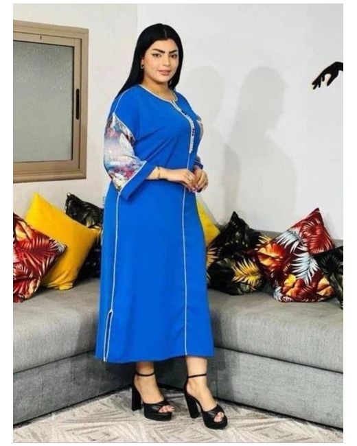 This beautiful kaftan is a must-have addition to your wardrobe. Perfect for any occasion, whether it's a party or a casual day out. The stunning colours of blue, beige, pink, and green will definitely turn heads. Made from crepe fabric, this kaftan is comfortable and stylish at the same time. It comes in sizes S, M, L, and XL and is perfect for women who love to look their best. This Moroccan kaftan is perfect for those who love vintage fashion. With its long length and elegant design, it's sure to make you feel like a queen. This kaftan is brand new and has never been worn, making it a great addition to any collection. So what are you waiting for? Add this beautiful kaftan to your wardrobe today!