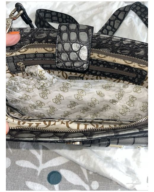 Guess Grey Mock Croc Bag Converts from shoulder bag to Clutch Zip inner pocket Large outer pocket with clasp