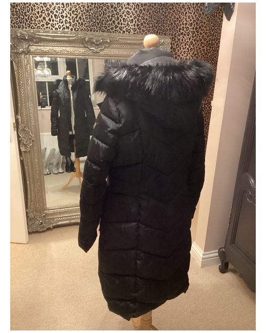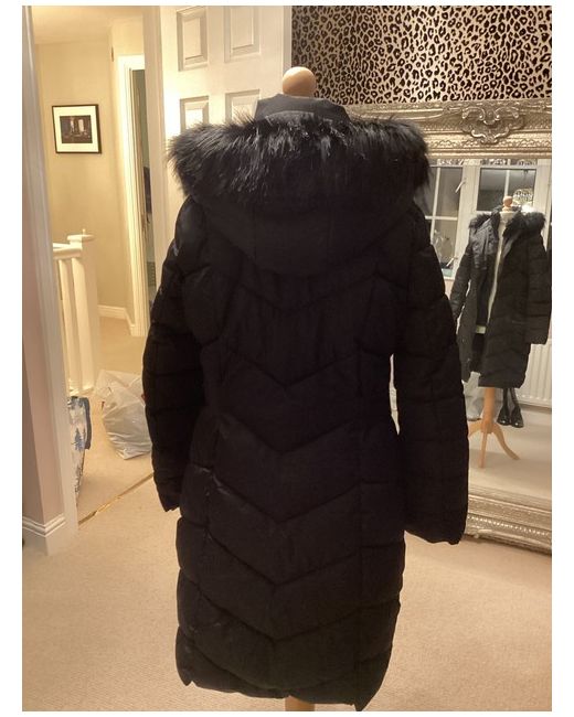 Black quilted Calvin Kein Winter coat, with faux fur hood.