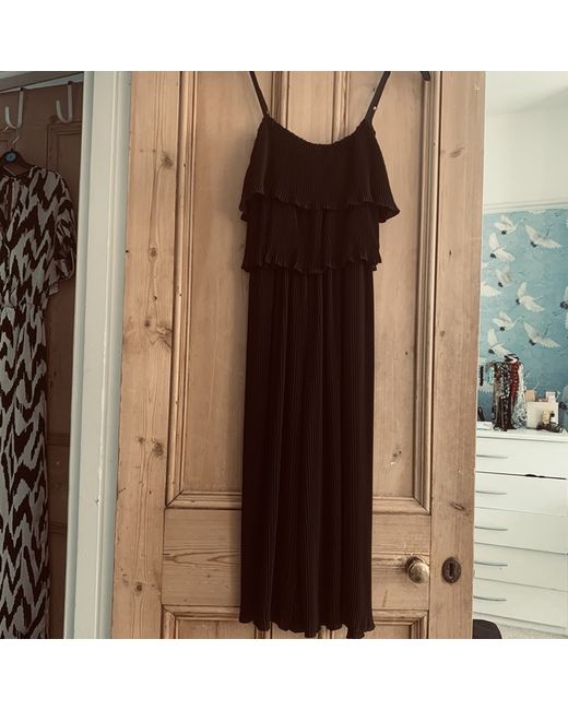 Never worn jump suit black pleated Stretchy shoe string straps spit straps adjustable midi length