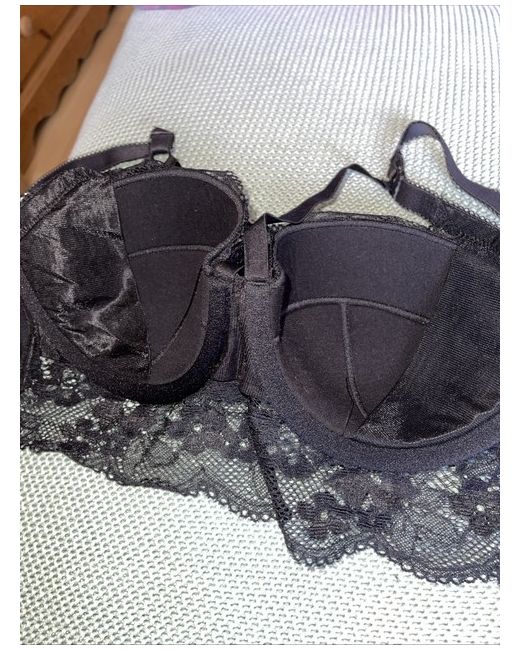 32DD Padded Strapless Bra Black Lace Overlay Design