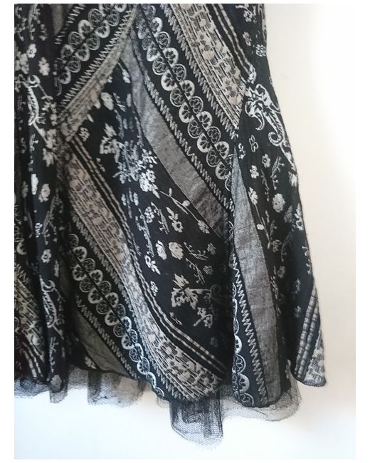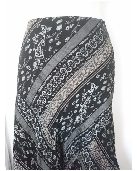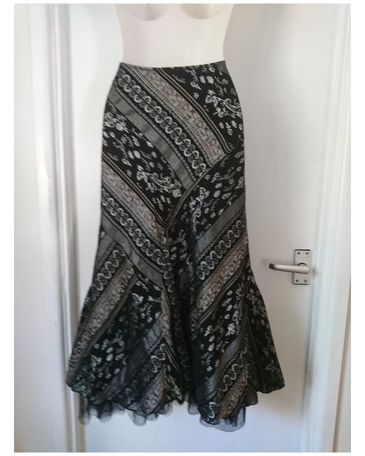 Fab Per Una Black&Silver Grey Patterned Skirt. Curved Angled Panels-Flippy Kick Hem. Zip&Button Side Fastener. Fully Lined With Double Layered Net Trim To Hem. Panels Flare Out Towards Hem.