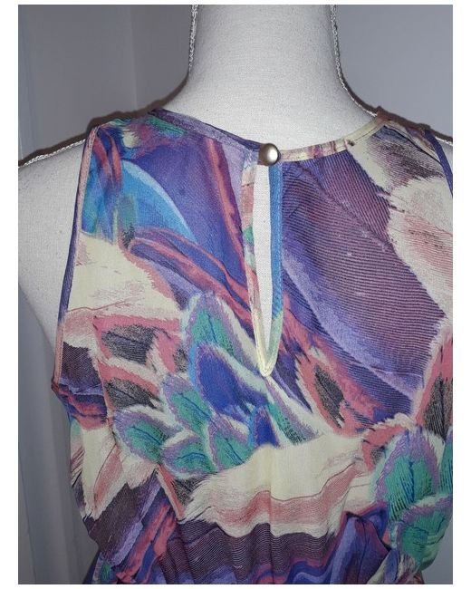 Atmosphere Multicoloured elasticated waist polyester Summer Dress Size 12. Condition is "New with tags". Small button fasten at top of back. Length at back is 45 inches, length at front is 29 inches. 2 belt loops. Lined. Spare button. Grandaughter having a wardrobe clearout, bought but never worn. Dispatched with Royal Mail 2nd Class.