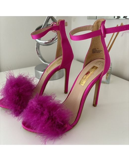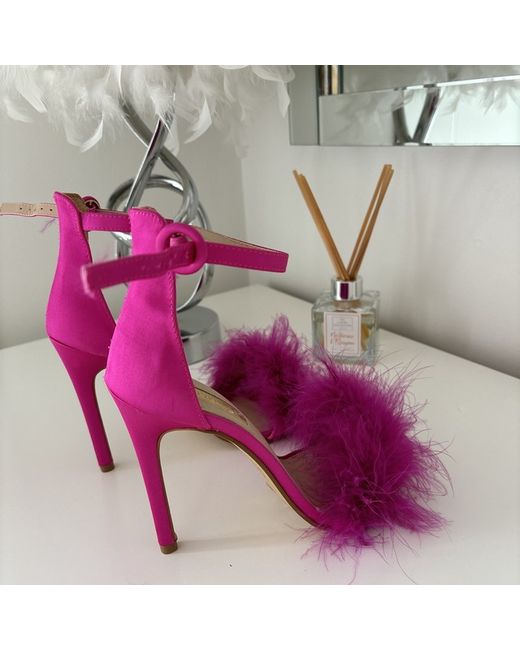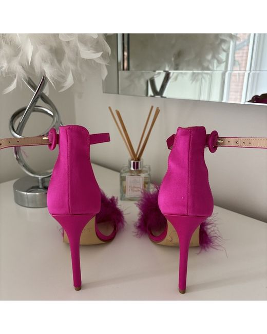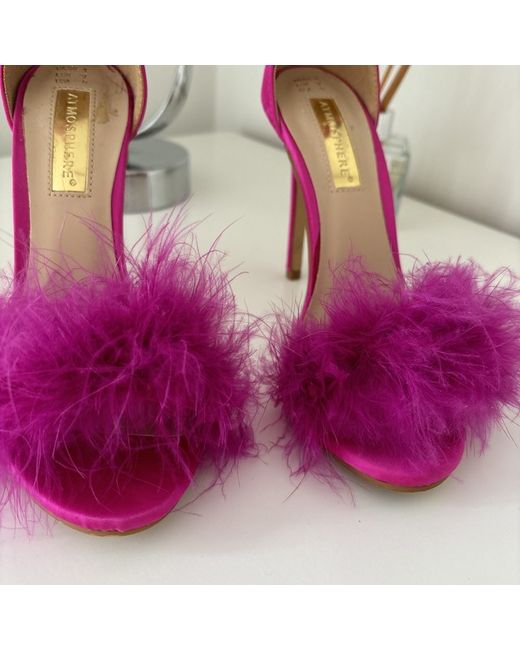PINK HEELS FEATHER FRONT SIZE 4. Only worn in shop to try on never worn outside after
