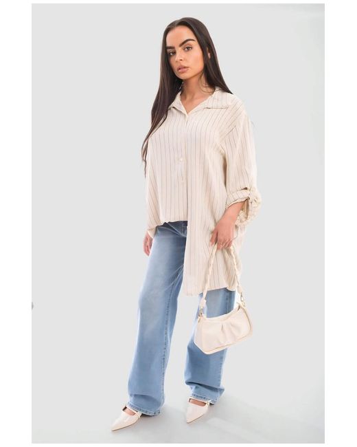 Oversized Long Sleeve Glitter Striped Button Down Shirt The Erin Oversized Long Sleeve Glitter Striped Button Down Shirt is a fun and trendy top! It's a great way to add a little shine to your wardrobe!