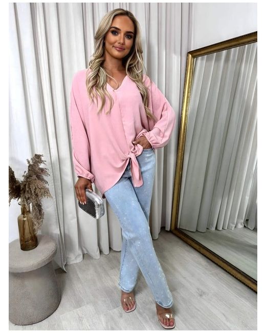 V-Neck Long Sleeve Tie Front Top da Donna