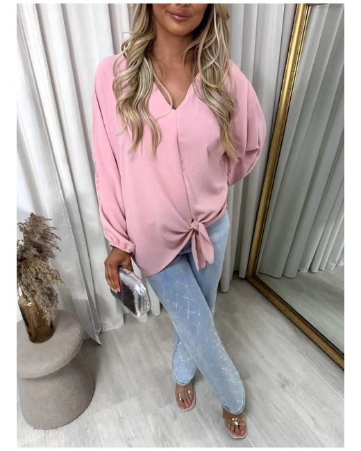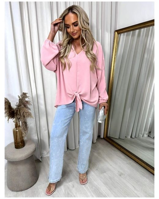 V-Neck Long Sleeve Tie Front Top The Abigail V-Neck Long Sleeve Tie Front Top is super cute and comfy! It has a nice V-neck and long sleeves, making it perfect for any season. The tie front adds a fun touch and looks great with jeans or shorts.