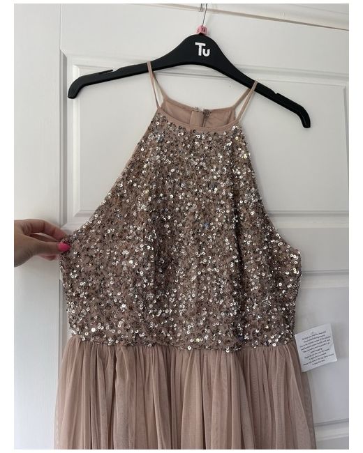 Maya Deluxe Halter Neck Sequin Midi Nude Dress 10 UK