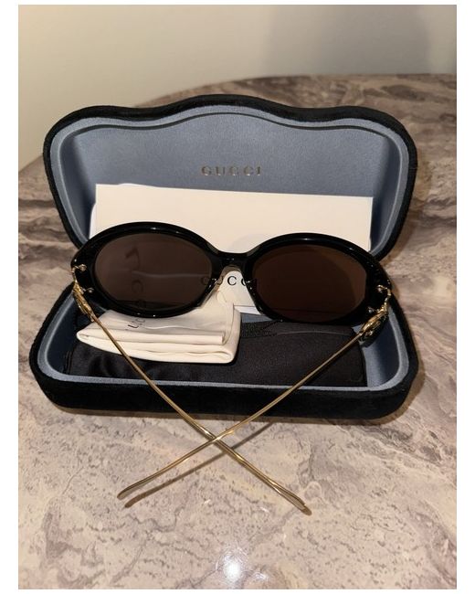 These Black Gucci Women Sunglasses are a stylish and designer accessory for women. Made from high-quality plastic, the round lenses are in a sleek black colour, while the frame is also made from black plastic. The iconic Gucci brand ensures a touch of luxury and sophistication to any outfit, making these sunglasses a must-have fashion statement for the summer season.