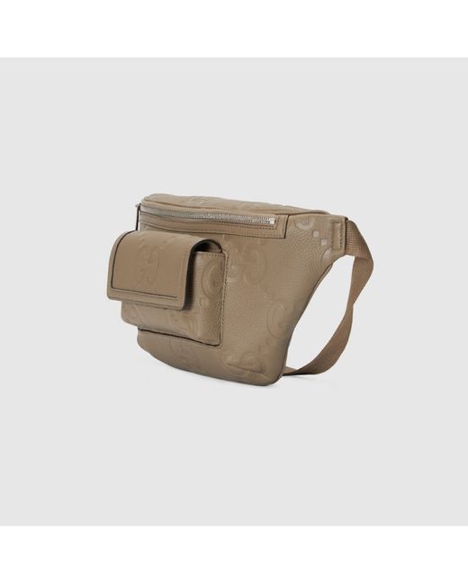 Jumbo GG Belt BagGucci’s signature pieces are constantly evolving around a dynamic narrtive. Taupe jumbo GG leather Cotton linen lining Front pocket with magnetic closure Zip closure Adjustable belt strap 11”W x 7”H x 3.1”D Weight 1.2 lbs Made in ITALY 1260£.