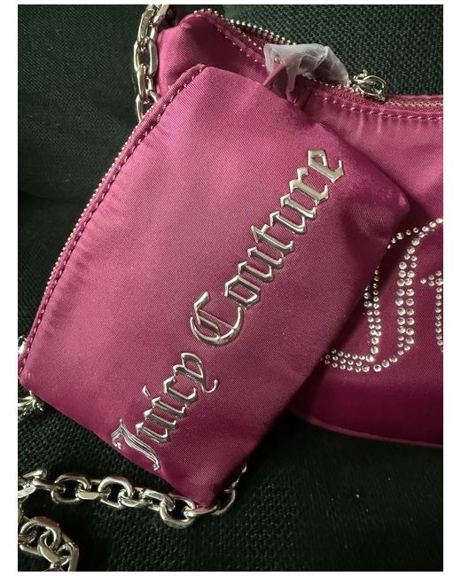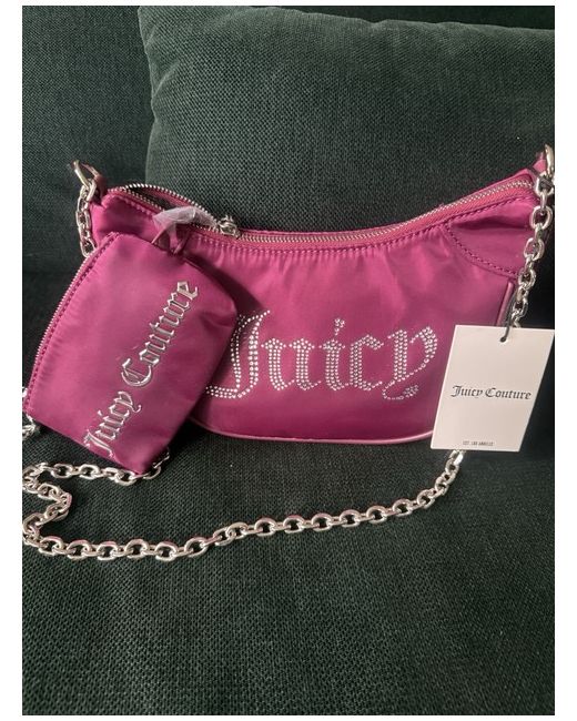 It features a small size with a zip closure and silver strap, adding a touch of luxury to the burgundy exterior. Made from polyester, this designer bag includes inner pockets and a coin purse, making it a practical and chic accessory for casual occasions.