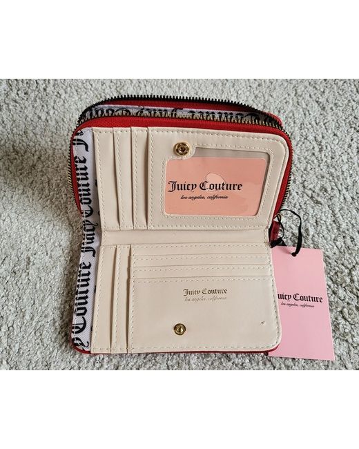 Add a pop of colour to your outfit with this stunning Juicy Couture heart logo coin purse. Made from high-quality faux leather, this zip-around purse features studded accents and the iconic heart logo.