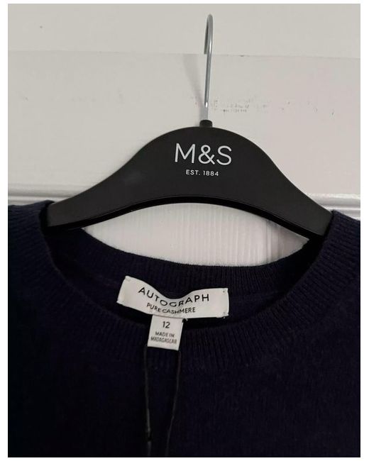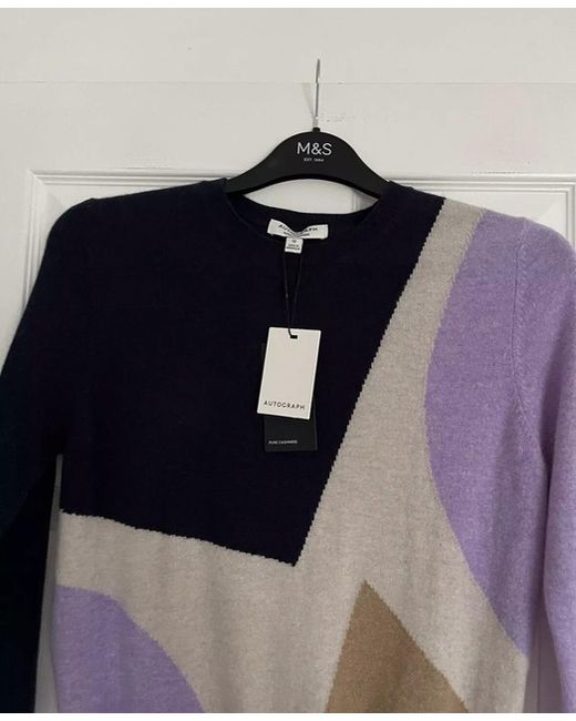 AUTOGRAPH M&S WOMENS CASHMERE NAVY BEIGE LILAC PATTERN CREW NECK JUMPER Size 12, pit to pit measures 20”, shoulder to hem measures 26”, brand new with tags Please ask any questions