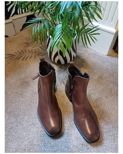 These Autograph leather ankle boots in brown are a stylish addition to any woman's wardrobe. With a UK shoe size of 3.5, these boots are crafted from high-quality leather for durability and a sleek appearance. Perfect for everyday wear, these boots offer both comfort and style, making them a versatile choice for various outfits.