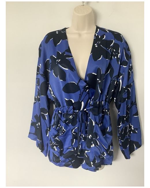 BNWT Shacket Jacket Small Patterned Waist Tie Pockets da Women di colore Blu