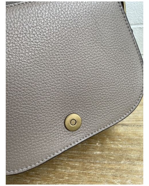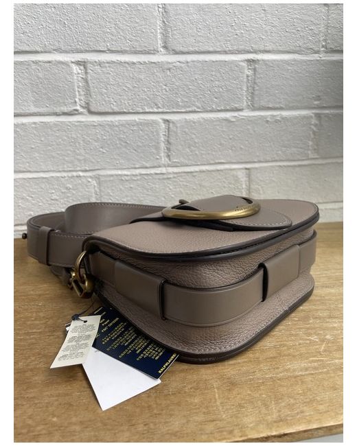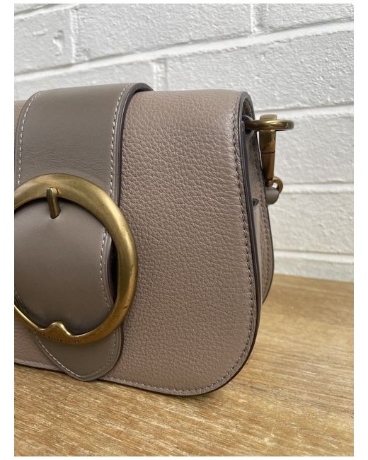 The modern silhouette features sleek pocketing and a removable, adjustable crossbody strap. Removable, adjustable crossbody strap with a 55.9 cm maximum drop. Concealed magnetic snapped closure. Decorative brass buckle at the front flap.